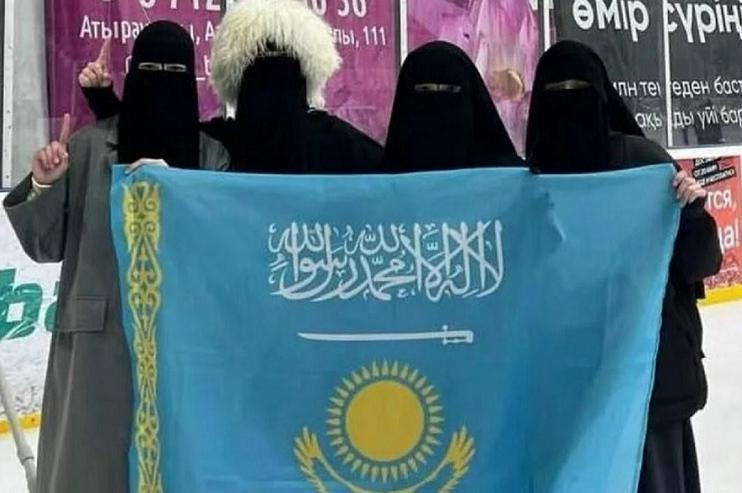 Cette question s'est de nouveau retrouvée à l'ordre du jour le printemps dernier après la publication sur les réseaux sociaux d'un cliché pris à la patinoire couverte municipale d'Atyraou. On y voyait quatre jeunes filles en niqabs posant avec un drapeau kazakhstanais « modifié ». Outre le soleil traditionnel, l'aigle planant et l'ornement, y avaient été ajoutés un sabre et une inscription en arabe — la chahada.